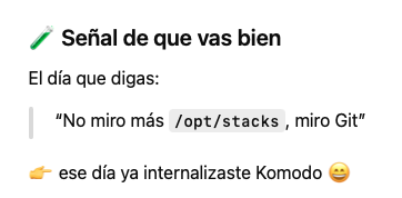 Luego me puse a aprender opciones de Komodo. Entre todas esas pruebas me enfoqué en tener una acercamiento GitOps. La idea final es que git tenga la configuración completa que requiere Docker y Komodo sea poseedor que los ‘secretos’ (claves, keys, etc.) y que se levante cuando se prende la aplicación.